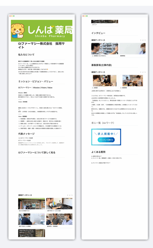 • Notionをベースにコーポレートを最短構築(会社情報/理念/店舗情報)